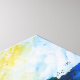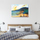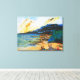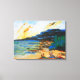 A striking coastal scene with intense colors features a vivid sky and textured landscape. The composition blends bright and dark tones artfully.