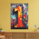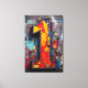 Make a powerful statement with "Abstract Champion," a high-impact vertical canvas that turns the number one into a work of gritty, urban fine art. This piece features a 3D-effect "1" drenched in a fiery palette of sunset orange and chrome yellow, set against a complex, multi-layered background of distressed teal, purple, and charcoal. The fusion of street art textures, stencil-style details, and digital glitch aesthetics creates a look that is both rebellious and triumphant.