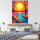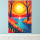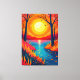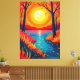 Escape into nature with this stunning canvas print. Featuring a vibrant, stylized sunset landscape with fiery orange skies, a glowing sun, framing tree silhouettes, and a serene reflective lake. This breathtaking modern outdoor aesthetic brings warmth and a touch of wanderlust to any living room, bedroom, or office space.