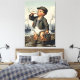 Funny WPA‑style Victorian mudlark canvas print featuring a tiny baby mudlark standing in a nineteenth‑century estuary, designed in a bold, block‑shaded vintage poster aesthetic. This humorous framed canvas blends Victorian child‑labour history with a surreal, humorous twist, creating a distinctive piece of wall décor with strong retro character humor.
