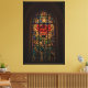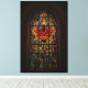 Esta impresión de lienzo muestra un impresionante diseño de vidrieras, con una rosa roja vívida con hojas verdes iluminadas por luz dorada. Los detalles intrincados y los colores brillantes evocan una sensación de belleza intemporal, elegancia y calidez espiritual, perfecta para realzar cualquier espacio interior.