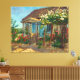 Una bonita casa de campo mexicana con flores de rosa de bonito roja, rosa, melocotón y blanca. Digitalmente redomina la pintura al óleo de los años 1900.