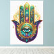 Lienzo Violet Verde Oro Pétalos Hamsa Turquesa Tercer Ojo