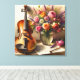 Arte acuarela ai que representa un violín que se inclina contra la pared, música de chapa y un jarrón de cristal de flores.