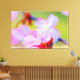 Una vista cercana de dos flores de sakura rosadas con estambres amarillos. Hojas rojas, fondo verde y rosa. La belleza mágica de la temporada de primavera. Una pintura digital extra grande a partir de una fotografía. Impresionante impresión en lienzo estirado floral para decorar tu hogar o para regalar en bodas, cumpleaños, baby showers o cualquier otro evento. Puedes transferir este diseño a una variedad de productos asequibles, incluyendo impresión en lienzo envuelto falso, cartel, acrílico, arte en metal, madera, tríptico, tapiz, placa con caballete, bloque de fotos, rompecabezas, tarjeta postal, plana y tarjetas magnéticas, imán, reloj de pared, cojín, mantas, azulejo de cerámica, caja de recuerdos, bandeja de joyas, salvamanteles, posavasos de cualquier tipo, cartas de juego. Solo elige el producto de la opción desplazable "Transferir diseño a un producto". Este diseño está abierto a personalización. Solo usa el botón de color azul "Personalizar" o "Editar diseño" (según sea el caso), o el enlace "Detalles" --> "Haz clic para personalizar aún más". Serás transferido a la página de "Herramienta de diseño" donde podrás usar fácilmente la opción "RELLENAR/AJUSTAR" para AJUSTAR EL DISEÑO AL TAMAÑO Y FORMA del producto, rotarlo, refle