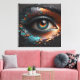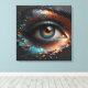 Un retrato de clausura que capta el hermoso ojo de una mujer en un estilo abstracto único. Con un toque de color cobre y turquesa sobre un lienzo de carbón vegetal, los elementos grabado en relieve crean una representación fotorrealista que es a la vez llamativa y artísticamente distintiva.