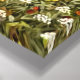 Una impresión en lienzo con una hermosa imagen de una escena natural: un pájaro posado en una cerca desgastada, flores silvestres creciendo alrededor de la cerca, un agricultor en un tractor, trabajando su tierra, árboles con hojas y tierras de cultivo con varios colores. Obra original de W.B.