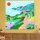 Montañas vívidas y mares serenos cobran vida en un estallido de colores brillantes y parches juguetones. Esta obra de arte captura la armonía de la belleza de la naturaleza y la energía vibrante.