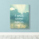 Volveré A Venir Impresiones Biblias Verso. Hermosa nube llena de fondo celeste con vigas de sol reventando sobre la parte superior de las nubes, enmarcando la inspiradora escritura de reconfortación, "Volveré" de John. Ver más regalos cristianos y fotos de lienzo en nuestra tienda, Citas cristianas: Enlace a continuación:
