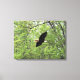 Magnífico águila calva vuela a través de verdes bosques primaverales. Bonita foto de naturaleza, ¡una gran idea para la decoración en casa!