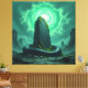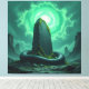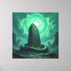Eine mystische Schlange umschlingt einen schwarzen Monolithen inmitten einer kargen, außerweltlichen Landschaft. Ein leuchtender grüner Wirbel im Himmel verstärkt die geheimnisvolle und kraftvolle Atmosphäre. Dieses Werk verbindet Symbolik von Macht, Schutz und kosmischer Energie.