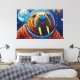 This artwork by Otis Porritt presents a striking portrait of a chimpanzee encased in a space helmet. Rendered with bold, impasto-like textures, the primate's face bursts with a kaleidoscope of vibrant hues, from deep blues and purples to fiery oranges and reds. The reflective visor frames its intense gaze, while the surrounding cosmos explodes with swirling nebulae and distant planets in a dynamic interplay of color and light. The rich, layered application of color creates a powerful, almost tactile visual experience, capturing a sense of wonder and exploration.