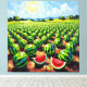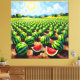 Ein weites Feld voller reifer, saftig-grüner Wassermelonen breitet sich unter einem klaren Sommerhimmel aus. Die leuchtenden Früchte liegen zwischen kräftigen Ranken, bereit für die Ernte. Wassermelonen sind nicht nur erfrischend, sondern auch reich an wichtigen Inhaltsstoffen wie Vitamin C, A, Antioxidantien und viel Wasser – perfekt für Gesundheit und Genuss. Dieses Bild fängt die Frische, Fülle und natürliche Schönheit der Melonenernte auf dem Land ein.