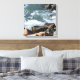 This beautiful canvas features a rocky seashore with swirling white water splashing against the rocks.