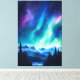 Elegante acuarela Celestial aurora boreal con magníficos colores azul, violeta y verde y paisaje invernal