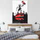 Cool Werewolf in London stencil art canvas print for fans of Werewolf movies, especially classic Werewolf movies which are set in London, and dare I say, that feature an American Werewolf? Awesome stencil art canvas print rendered with a Banksy-style black and white stencil image of a London bus, a London post box, against a background of silhouetted London scenery and an amusing London-based slogan.