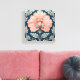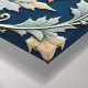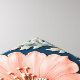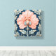 A square tile with a pink flower in the center, surrounded by silver leaves, on a dark blue background, symmetrical composition, intricate details, vintage style, decorative art.
