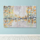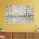 Impressionistic trees line a calm body of water, their reflections creating a mirrored effect. Soft autumn hues of orange and green are set against a muted background, emphasizing a serene and tranquil environment.