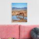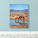 In the heart of the drylands, two wild horses drink peacefully from a calm desert pond, mirrored perfectly against rugged mountains and a crystal-blue sky. This painting captures the harmony of survival and serenity in the wild. A breathtaking tribute to untamed grace and the beauty of open spaces.