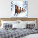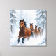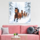 A herd of wild horses gallop through a breathtaking, snowy forest, their powerful movements creating a stunning contrast against the serene, snow-covered trees that envelop the scene in majestic beauty
