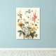 A lively gathering of wildflowers in shades of blue, white, yellow, orange, and pink stands gracefully with delicate green foliage. This classic botanical illustration captures the fresh charm of a summer meadow on a soft neutral background, evoking natural beauty and tranquility. Perfect for kitchen wall art, canvas prints, greeting cards, throw pillows, mugs, and home décor that brings gentle countryside serenity to any space.