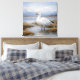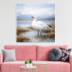 A snow goose stands peacefully in the shallows of a still northern marsh, its white plumage reflecting softly in the cool blue water. Golden tundra grasses frame the shoreline while distant snow-capped mountains rise beneath a calm, cloud-washed sky. The gentle layering of blues and grays creates a serene alpine atmosphere, emphasizing solitude and natural harmony. This artwork captures a tranquil moment in the rhythm of migratory life—graceful, contemplative, and timeless.