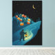 Enhance your home with this peaceful winter-themed canvas featuring a softly glowing village on a snowy hillside. The artwork shows warm cabin lights, tall pines, and a traveler walking along a winding snowy path with a lantern under a star-filled night sky. The calm atmosphere and rich colors create a beautiful, storybook-style piece perfect for winter décor, seasonal displays, or year-round wall art. Printed on premium wrapped canvas for crisp detail and long-lasting quality.