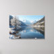 Dieses ruhige Winterdesign zeigt einen klaren Bergsee, in dem sich verschneite Gipfel und Wälder spiegeln. Ein vereister Baum am Ufer bildet einen sanften Blickfang und verleiht der Szene eine friedliche, naturverbundene Atmosphäre.