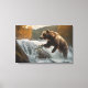 El arte de lienzo envuelto se muestra con una foto impresa de un oso pescando en el río en el Parque Nacional Yellowstone. Imagen con licencia