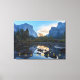Una serena fotografía paisajística captura la impresionante belleza del valle Yosemite al amanecer. Los acantilados de granito de El Capitan y Media Cúpula se elevan majestuosamente en el fondo, sus imponentes formas se reflejan en las aguas quietas del río Merced. El cielo es una mezcla suave de azul y rosa, con nubes espesas que le dan un toque de belleza etérea.