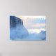 Una impresionante fotografía paisajística capta un majestuoso capricho envuelto en una gruesa capa de niebla. Los acantilados, parcialmente oscurecidos por la niebla etérea, crean una sensación de misterio y grandeza. El cielo de arriba es un lienzo de tonos suaves y pastel, con nubes espesas que proyectan sombras delicadas por toda la escena.