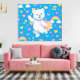 Hang at kid eye-level to invite interaction. Mix with 1–2 smaller prints for a mini gallery. For parties, place behind the dessert table, then move it to the nursery to keep the celebration going.