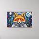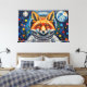 Esta vibrante obra de arte de Otis Porritt presenta un zorro llamativo, representado con pinceladas ricas y texturizadas, que mira con confianza desde el interior de un casco de astronauta. El pelaje naranja y blanco del zorro contrasta con el azul profundo de su visera y el rojo intenso de su traje espacial, completo con un parche de la bandera estadounidense. Detrás del intrépido explorador, un cosmos arremolinado estalla con azules, púrpuras y naranjas vívidos, salpicado de cuerpos celestes, incluida una luna prominente. El estilo dinámico y pictórico le da al medio digital una cualidad táctil, dando vida a la escena cósmica.
