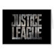 El logo de esta película de la Liga de la Justicia está estilizado con una textura metálica desgastada.