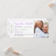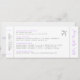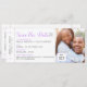 En una decoración moderna y luminosa de lavanda lila orquídea púrpura, plateada y gris, este creativo pase de abordaje temático para el viaje ahorra la fecha de una boda de destino y tiene espacio para una foto y espacio para los detalles de planificación de viajes para sus invitados. Un icono romántico del avión y detalles auténticos del billete de avión retro incluyendo flechas pequeñas, un código de barras y una caja para una asignación de asientos en una fuente vintage del ordenador completan el aspecto. Las bodas de destino requieren un poco más de planificación para informar a los huéspedes de toda la información del alojamiento antes que un boda local, así que asegúrese de incluir todo lo que pueda. Si simplemente quieres correr la voz mientras trabajas los planes de viaje y excursiones, el diseño de la parte de atrás se puede borrar por completo, solo tienes que hacer clic en 'personalizar más lejos'. Los destinos de uva de papel en Zazzle se especializan en invitaciones temáticas de viajes y papelería de boda para la pareja aventurera y de afición vaginal que planea sus nupcias en el extranjero.