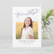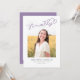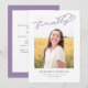 Esta moderna invitación de graduación presenta la palabra finalmente escrita en lila sobre una sola foto. La parte posterior de la tarjeta puede utilizarse para texto adicional o como invitación.