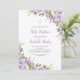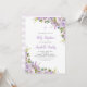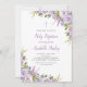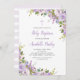 Un personalizado asequible imprimió invitaciones de bautismo a una bebé. Este diseño femenino de bonito tiene un borde floral acuático con flores moradas pastel y vegetación. Personalice el diseño con los detalles del fiesta de bautismo de su hijo. El lado inverso tiene un patrón de banda de color morado o usa el espacio para agregar texto y fotos adicionales. Haga clic en Personalizar para elegir cualquier color de fondo y editar los tipos de letra y colores del texto para crear uno único de los tipos de invitación a la cristalización para su bebé.