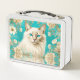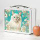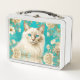 fondo turquesa flores blancas anticuadas y un hermoso punto de Lilac Lynx gato siamés AI Art de minx267