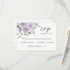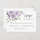 Tarjeta RSVP de boda floral malva violeta y elegante moderna. Tarjeta RSVP con flores acuáticas pintadas a mano y vegetación en tonos violeta, púrpura, lila, malva y caligrafía verde y moderna. Puede personalizar la redacción, el estilo de letra, el color y el tamaño delante y detrás de esta tarjeta RSVP botánica. Elementos coincidentes disponibles.