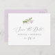 Esta lila rústica horizontal, salvo la postal de fecha, es perfecta para un boda de primavera o verano. El romántico y elegante diseño floral presenta flores silvestres de lila morada con acuarelas y un ambiente rústico y acogedor.