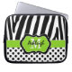 Lime Black Zebra Stripes Polka Dots Laptop Funda