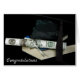 Diploma de dinero con un gorro negro de graduación en los libros. El texto es editable.