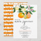 Encontró sus principales invitaciones a la ducha de bridas con una acuarela vibrante, una rama de cítricos de limón y un patrón de limón con rayas negras y blancas en la parte posterior. Personaliza fácilmente con tus propios detalles.