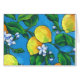 Ésta es una pintura al óleo de limones, de hojas y de flores del limón en un cielo de la turquesa. Es un diseño que fue creado para el mercado de producto de papel y está disponible ahora en bolsos del regalo, el papel de regalo, el papel de empapelar y la tela.