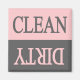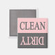 Limpiar el imán de lavavajillas gris y rosa sucio