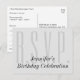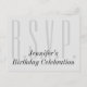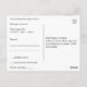 Este diseño de postal de R.S.V.P. limpio y respetable incluye el mensaje "R.S.V.P." en la parte delantera, junto con el nombre de la ocasión del personalizable. También incluye un formulario RSVP personalizado en la parte posterior para que el destinatario lo complete, junto con una dirección personalizado a la que se enviarán por correo las tarjetas RSVP completadas. Tarjetas RSVP como esta podrían ser usadas para averiguar quién asistirá a una boda, un fiesta de Navidades, un fiesta de retiro o alguna otra celebración.