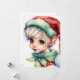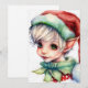 Lindo elfo de Navidad en acuarela que lleva un gorro de Santa