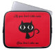 Bolso de portátil personalizado con un gato negro en rosa con una cita. ¡Se puede cambiar el color de fondo!