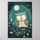 Lindo póster de un búho durmiendo bajo la Luna y l