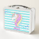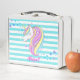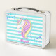 Presentamos la Caja de Almuerzo de Metal de Rayas Arcoíris Aquamarina Kawaii Divertida y Bonita, el accesorio perfecto para el regreso a clases. Esta caja de almuerzo es linda y divertida y cuenta con arcoíris pastel coloridos dibujados a mano sobre rayas aquamarinas y blancas. Con sus acentos rosados femeninos y su diseño genial, seguro hará que la hora de la comida sea agradable y elegante. Ideal para cualquiera que ame lo kawaii, esta adorable caja de almuerzo combina diversión y practicidad en un paquete encantador.